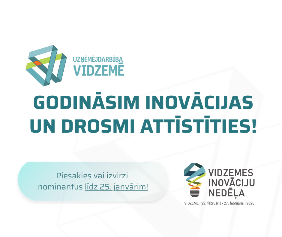 • Uzņēmumu pieteikšanai Vidzemes inovāciju balvas kategorijām (Inovācija, Ilgtspēja, Sociālā atbildība): https://ej.uz/u37q