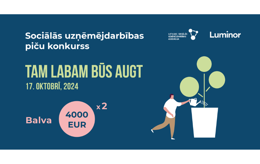 Ar mērķi stiprināt un attīstīt sociālo uzņēmējdarbību Latvijas Sociālās uzņēmējdarbības asociācija kopā ar Luminor banku turpina ikgadējo tradīciju un izsludina pieteikšanos sociālās uzņēmējdarbības piču jeb prezentāciju konkursam "Tam labam būs augt 2024". Arī šogad kopējais balvu fonds – finansējums sociālās biznesa idejas realizēšanai vai organizācijas attīstībai – ir 8000 eiro. Dalība konkursā ir bezmaksas, un pieteikties iespējams līdz 20. septembrim.