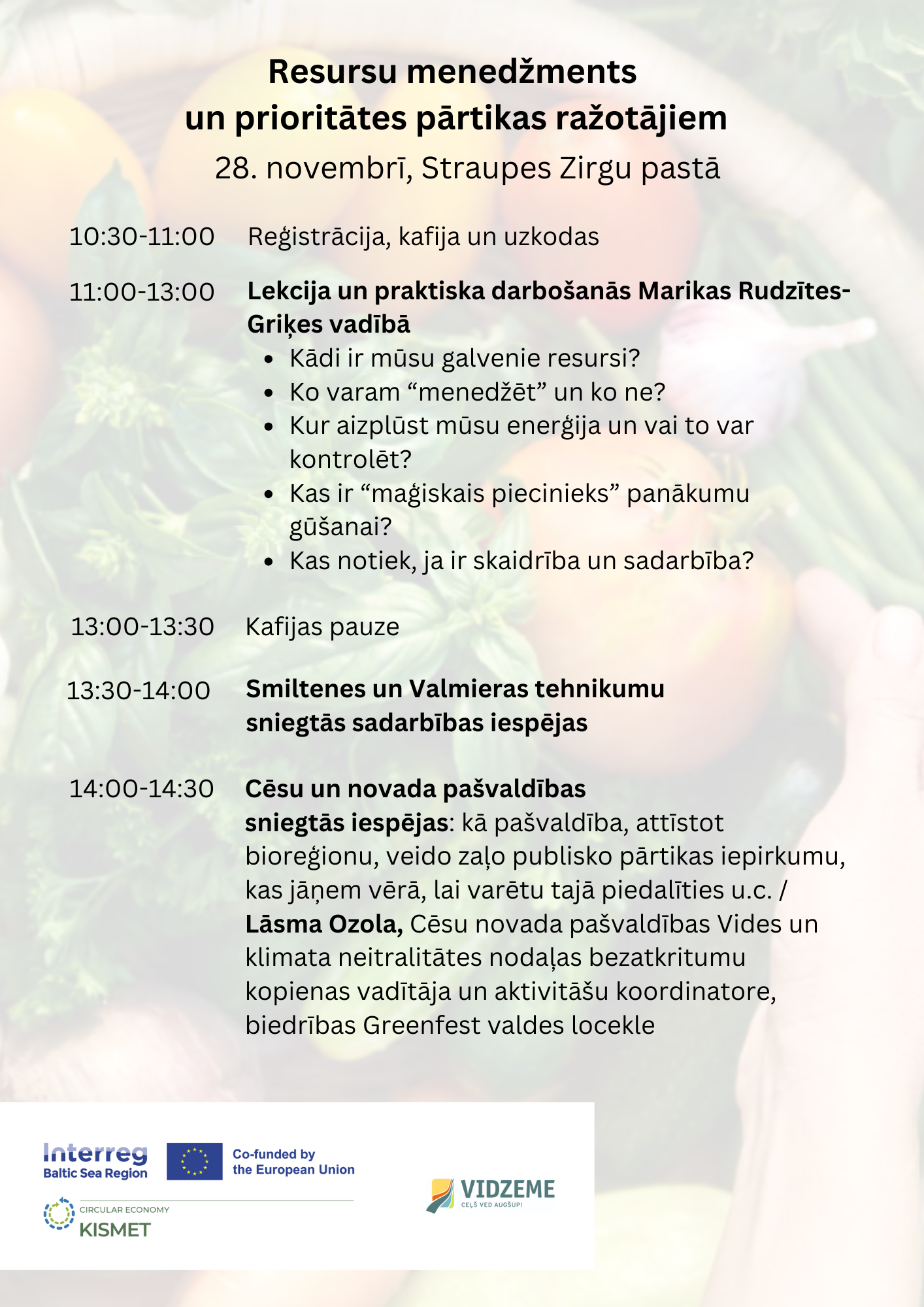 Pasākums tiek organizēts Interreg Baltijas jūras reģiona sadarbības programmas 2021.-2027. gadam projekta KISMET “Ilgtspējīgas pārtikas sistēmas atbalstoša vide” ietvaros.