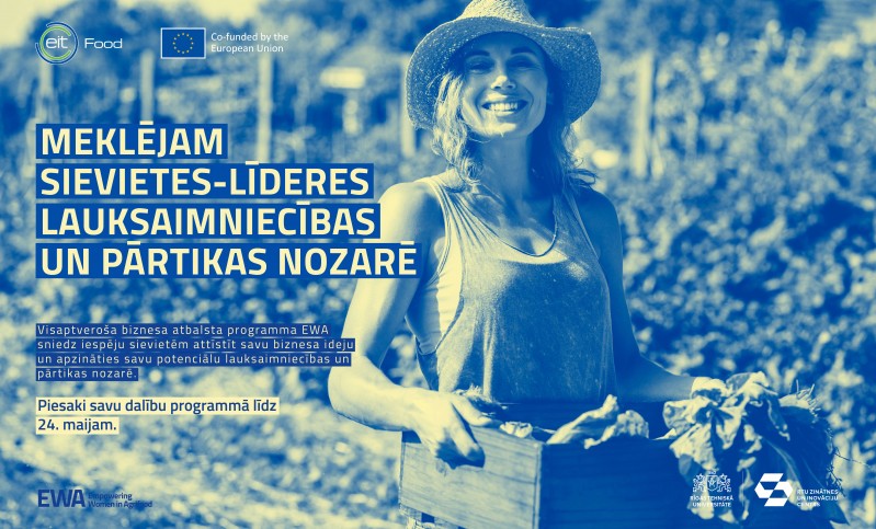 Rīgas Tehniskās universitātes (RTU) Zinātnes un inovāciju centrs aicina jaunās uzņēmējas līdz 24.maijam pieteikties Eiropas Inovāciju un tehnoloģiju institūta (EIT) zināšanu un inovāciju kopienas “EIT Food” biznesa atbalsta programmai “Empowering Women in Agrifood” (EWA), kuras mērķis ir novērst dzimumu nevienlīdzību lauksaimniecības un pārtikas nozarēs. Programmā tiks uzņemtas desmit Latvijas uzņēmējas, bet kopā tiks atlasītas 120 kandidātes 12 valstīs.