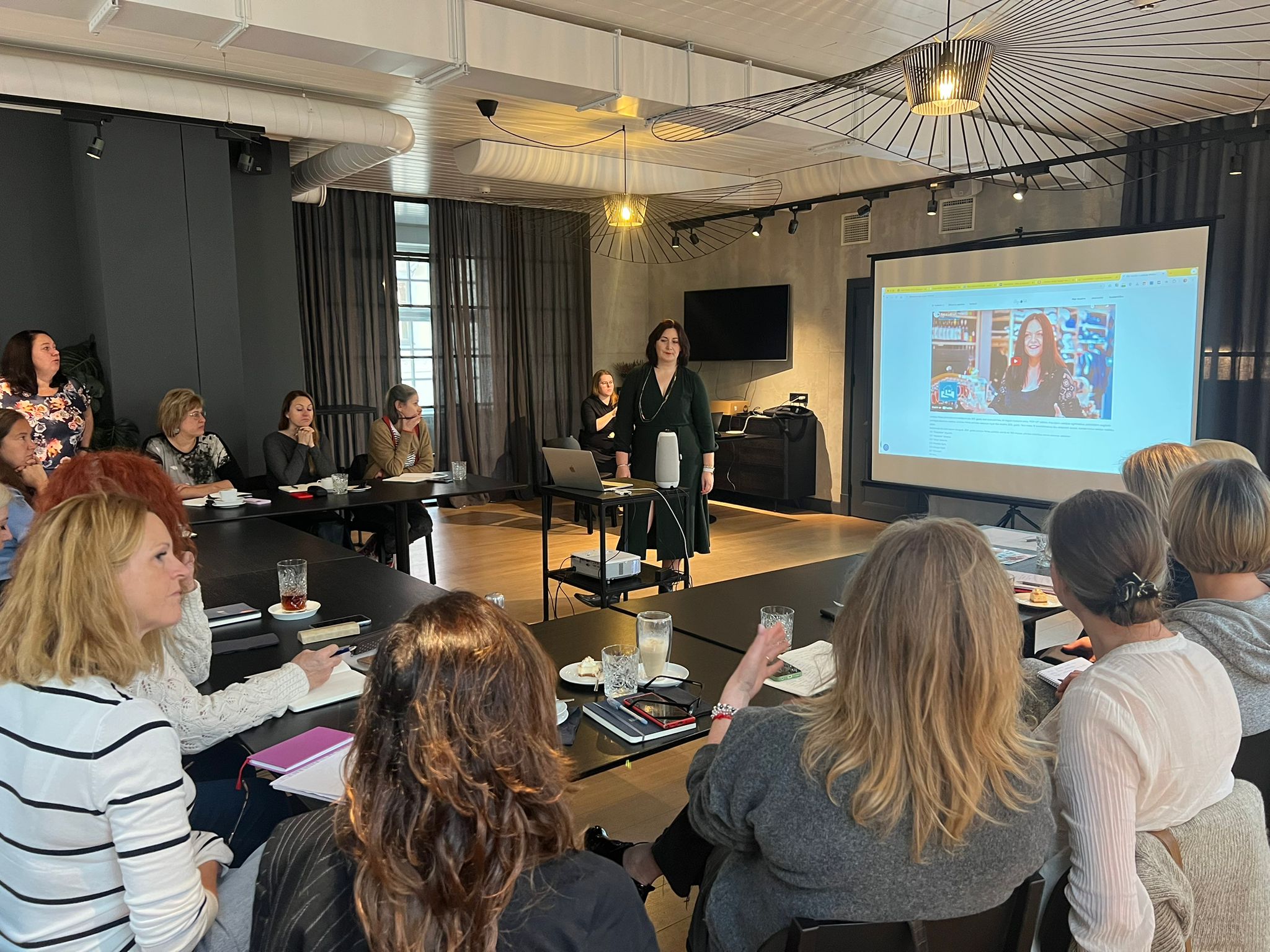 Līga Lētiņa igauņu un latviešu dalībniecēm sniedza ieskatu dizaina situācijā Latvijā. Uzzinājām, ka Latvijas Dizaina centra un Latvijas Kultūras ministrijas kopīgā misija ir veicināt dizaina stratēģisko izmantošanu dažādās nozarēs, no radošās industrijas līdz valsts pārvaldei, padarot dizainu par spēcīgu attīstības dzinējspēku Latvijā. Kā norāda Dizaina centrs, dizains nav tikai par to, kā lietas izskatās, bet arī par to, kā tās darbojas un kā tās var ietekmēt ikdienas dzīvi, uzlabojot gan lietotāju pieredzi, gan veicinot inovācijas un ilgtspēju.